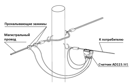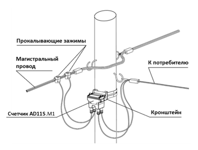AD11S.M1.1-FL-R (1-3-1) - Split-счётчик электрической энергии однофазный статический двунаправленный непосредственного включения. Предназначен для измерения электрической энергии (активной и реактивной, прямой и обратной), активной, реактивной, полной мощности, коэффициента мощности, коэффициента реактивной мощности, частоты сети, фазного напряжения, фазного тока, а также показателей качества электроэнергии - отклонение напряжения, отклонение частоты, длительность перенапряжения в однофазных сетях переменного тока напряжением 230 В. Позволяет осуществлять централизованный сбор данных по линиям 0,4 кВ или по радиоканалу 868 МГц. Счетчик оборудован силовым реле.Прибор учета AD11S.M1.1-FL-R (1-3-1) устанавливается непосредственно на опоре ЛЭП с использованием специально разработанного кронштейна или подвешивается на вводной изолированный провод. Для отображения информации об измеренных параметрах используется пользовательский дисплей CIU8.B-2-1.