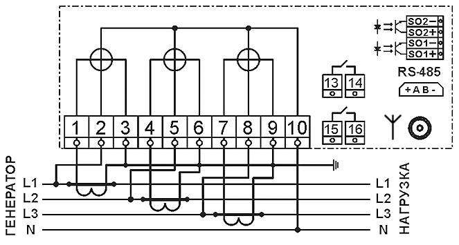 | Ток собственного потребления по фазам, не более | 0,046 А |