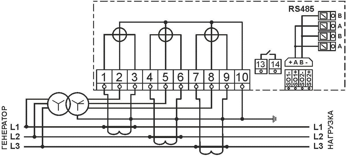 GPRS, RS485 модуль под крышкой клеммника, оптический порт |