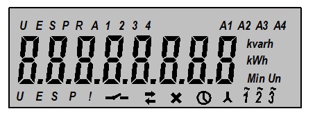 На дисплее отображается индикация такого же формата, как для активной энергии, импорт и OBIS код.